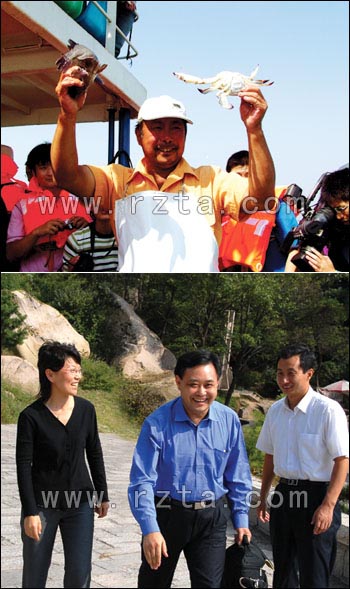 9月18日上午,在日照市旅游局副局长张荣英、市场开发科科长张锡华,东港区旅游局局长肖建华,东港区旅游局副局长石强等领导的陪同下到任家台村和乔家墩子村参观考察。肖局长向记者们介绍了日照民俗旅游发展的总体情况。在任家台民俗村记者们亲身感受了渔家捕鱼的欢乐,看着老渔民一把一把的收网,捕捞上来张牙舞爪的大海蟹和活蹦乱跳的海鱼让记者们禁不住雀跃欢呼。吹着海风,品尝了亲自烹饪的海蟹,真正体验到渔家乐民俗旅游的特色,感觉是那么的轻松和惬意。