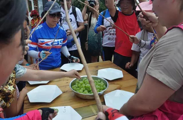 听说过钓鱼的,那您听说过钓葡萄的么?小编看到此幕忍不住感叹:你们城里人可真会玩!