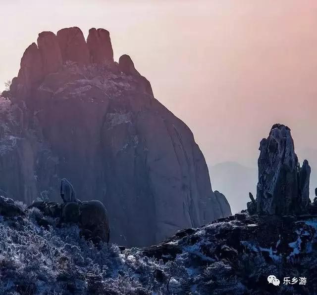 在五莲,流传着一句话叫“过了三关两重天”。一路上都是雪花纷飞,白茫茫一片,自打车子驶出松柏镇后,眼前的雪景逐渐变得零碎、稀薄,直至没有,雪在落地后即化成了水,上山前,我还在想山上是不是也是此番景象呢!