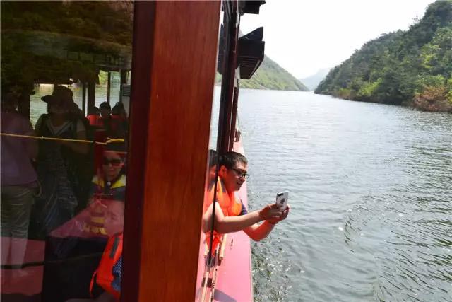 青岛朋友们这一天的行程第一站,选择了双龙峡。久闻双龙峡素有“齐鲁小三峡”之称,历史上的文人骚客更是不胜枚举。今日畅游双龙峡,游客朋友们表示果然名不虚传,以前一直以为五莲山风景名胜区仅仅有山,今日才知更有碧水蓝天双龙峡!
