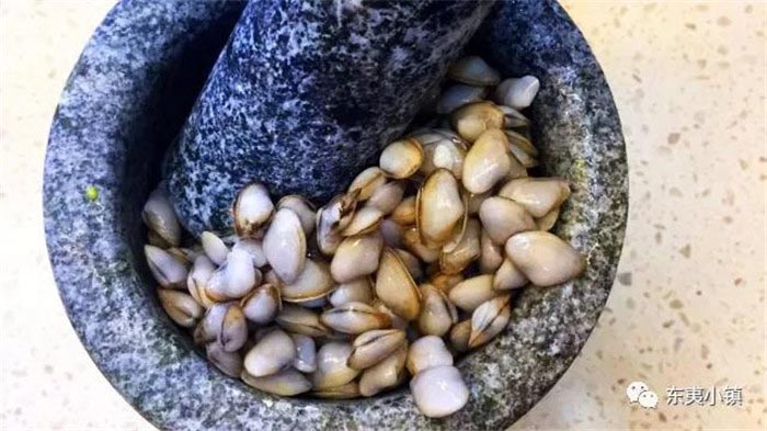❥ 煮“海沙子”是一门技术活,当淘洗干净的海沙子下锅,随着温度的上升,海沙子就会张开了口子。煮好的海沙子连部分汤水放入洁净的不锈钢盆,用勺子轻捻、搅打,贝肉慢慢会浮在液面上。
