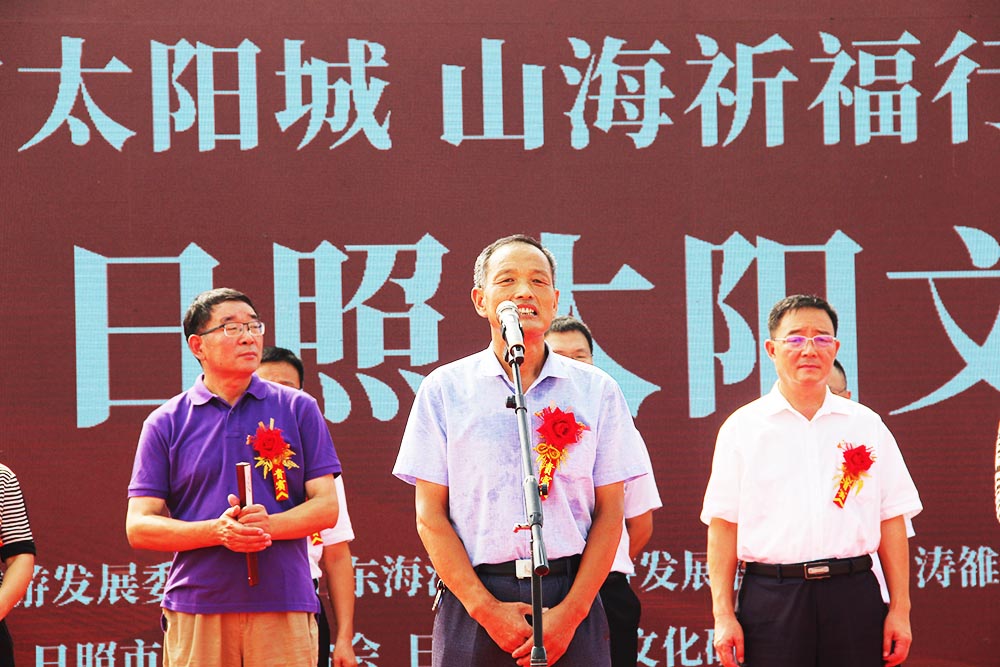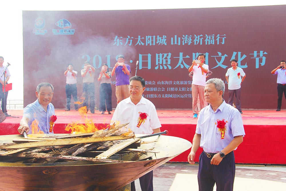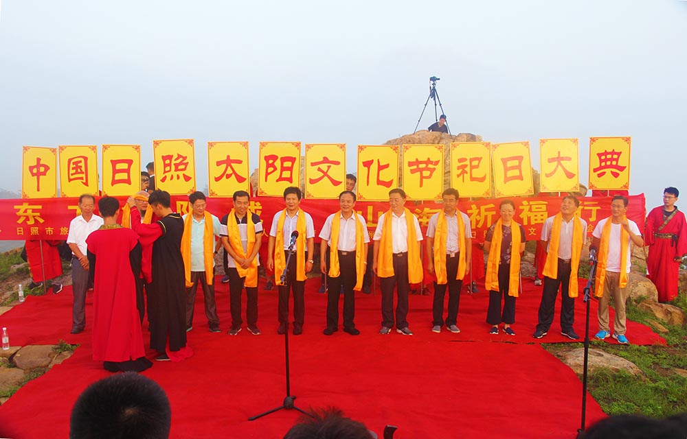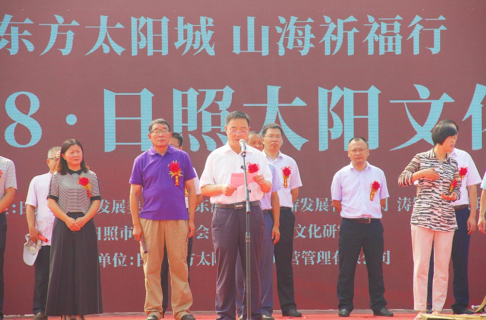 7月31日上午,由市旅发委、山东海洋文旅公司、涛雒镇人民政府、市旅游联合会、市太阳文化研究会联合主办的“东方太阳城·山海祈福行”2018中国·日照太阳文化节在日照东方太阳城举办。市旅发委主任王均波,市旅发委副主任赵志超,海洋文旅公司董事长赵东江、总经理古茂林及班子成员,涛雒镇党委书记厉华珍,涛雒镇党委副书记、镇长孙强,东港区旅游局局长郑丽丽,太阳文化旅游研究专家学者代表,涛雒镇部分村党支部书记、村民代表,市有关企业、金融机构负责同志、媒体及游客齐聚日照东方太阳城天台山和刘家湾赶海园,为太阳祈福祝寿。