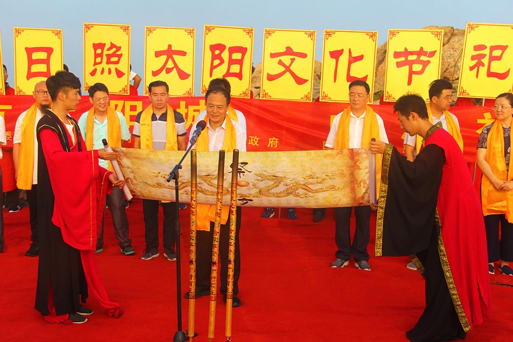日照东邻黄海,日出先照,独特的自然地理和人文环境孕育了原始太阳崇拜,开创了中国古代璀璨的太阳文化,是与埃及、希腊、印度、秘鲁齐名的世界五大太阳文化起源地之一,素有“东方太阳城”的美誉。历史上每逢农历六月十九,日照民间就有“给太阳过生日”的习俗,在天台山举办羲和老母庙会,祭祀太阳,感恩太阳无私奉献。“祭太阳”已列入日照市市级非物质文化遗产名录。