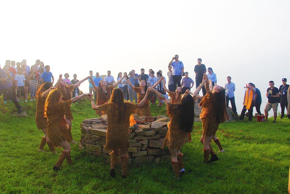 早上5:38分,祀日大典在山清水秀、灵气自生的人间仙境——天台山主峰正式开始,此次祀日大典分敬献贡品、恭读祭文、顶礼膜拜、燔柴祀日、祀日乐舞、火种采集等9个环节,大典由涛雒镇党委副书记、镇长孙强主持,海洋文旅公司董事长赵东江作了开场致辞,市旅发委主任王均波宣读祀日祭文,全体宾客与典仪人员一起行“太阳礼”,集体祈福。