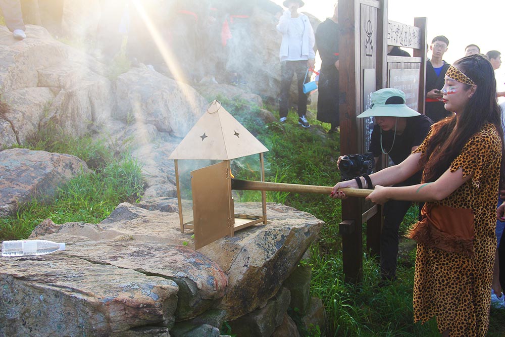祀日大典完成后,取太阳火种引入长明灯,由专人保护火种下山,经旅游景观大道,送往刘家湾赶海园。