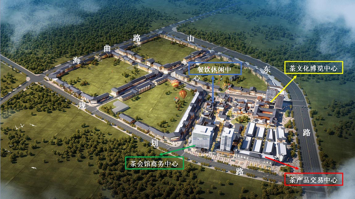 项目一期工程,总占地132亩,建设面积23万平米。规划博览、商务、休闲、交易四个功能区。茶交易中心,总面积3万平米,主体已经建成,年底交付。低密度商业设施2019年建成,3个高层建筑2020年投入使用。二期计划向南拓展到海曲路,将整个区域纳入项目范围,建设13万平米的商业街区,与一期形成30万平米、全市最大的茶文化产业综合体。