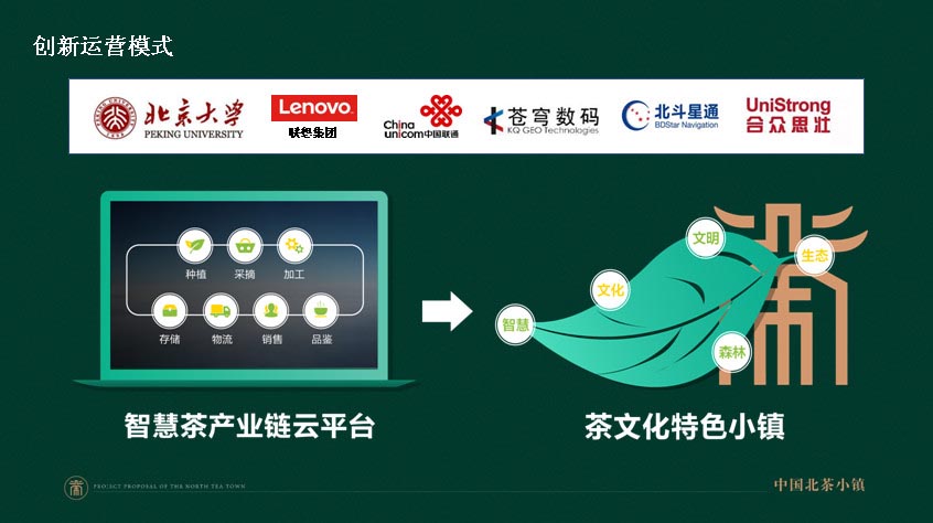 项目自己的科技团队,与联想集团、北斗科技等30多家科技企业合作研发,运用物联网、大数据、北斗定位等技术手段、建立起“种植、采摘、加工、运输、销售、品鉴”全过程的智慧产业链平台,以全新的商业运营模式,整合提升茶叶品牌,建设具有智慧、文明、文化、森林、生态五大特点的“茶文化特色小镇”,助推旅游富市!