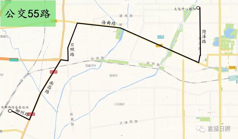 12月11日将开通由文化中心枢纽站经菏泽路、海曲路、日照路至日照西综合客运站的公交55路,早班时间为5:30,末班时间为20:30。