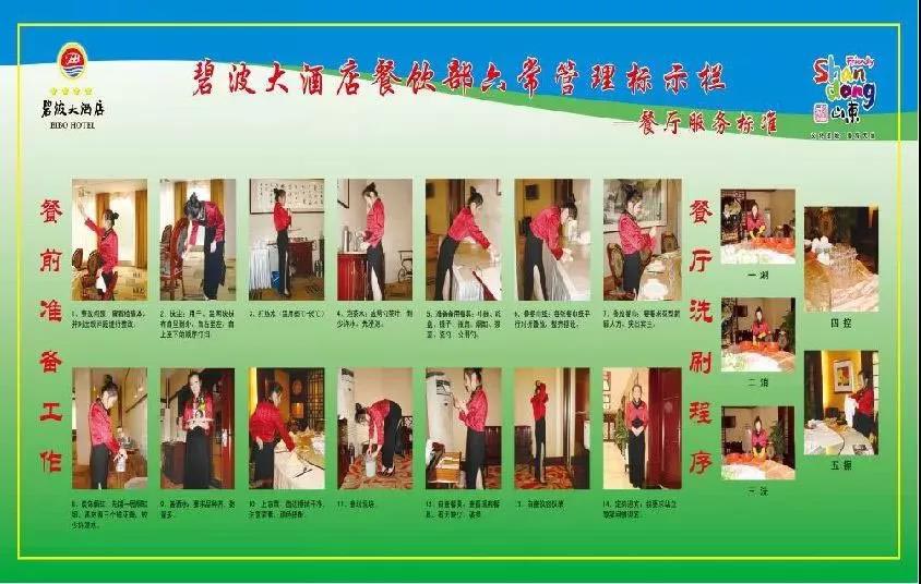 从最初收集标准、制定规章制度,到不断地通过工作实践去修订完善,酒店重新建立起了既适合自身发展,又具有碧波特色的服务标准化体系。用标准规范服务,靠服务完善规范。
