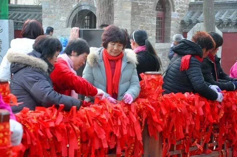 莒县浮来山风景区举办2019年“庆元旦·迎新年”祈福系列活动,游客在千年银杏树下系祈福带,为亲朋好友祈福。