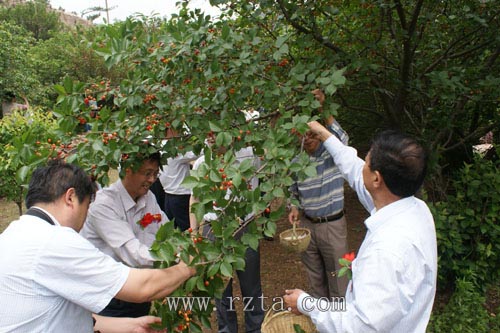 启动仪式结束后,与会领导巡视“旅游下乡工程”咨询台和临时邮局并参与樱桃采摘活动。
