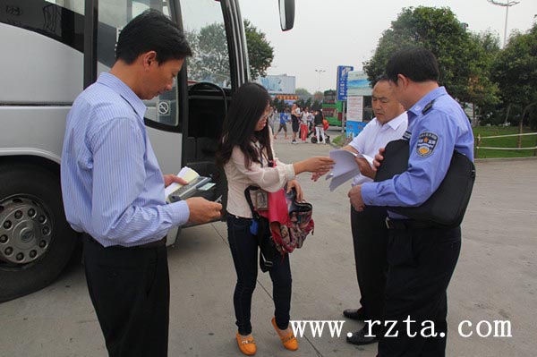 旅游执法小组成员现场检查带团导游证件