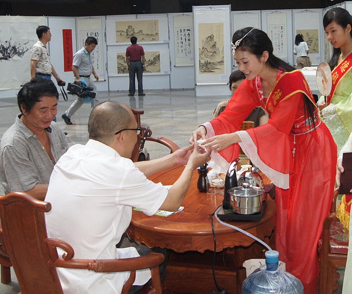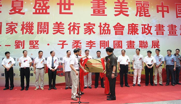 8月16日10时,由中央国家机关美术家协会、兜底儿网与山东银海茶业有限公司联袂举办的《中央国家机关美术家协会书画展》暨《银海文化艺术交流展(一期)》在市博物馆盛大开幕。仪式由中国兜底儿网韩宗海会长主持,日照市文联副主席金立泉致欢迎词。国务院参事室参事、国家农业部原副部长刘坚、中央国家机关美术家协会主席王阔海、中央国家机关美术家协会副主席王继坤、中央国家机关美术家协会副主席张汉瑛做本次活动致辞。
