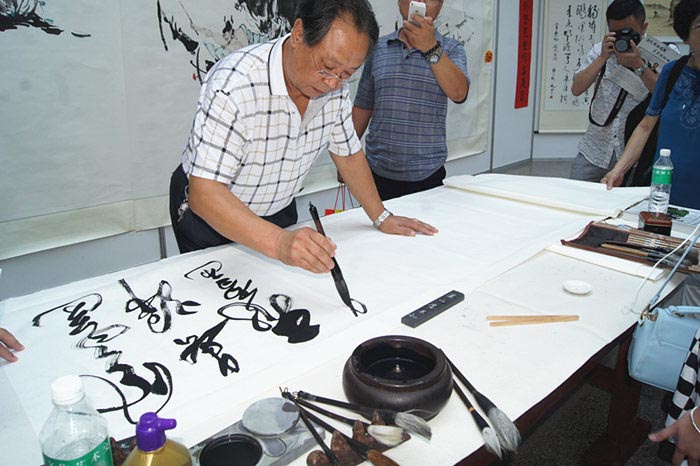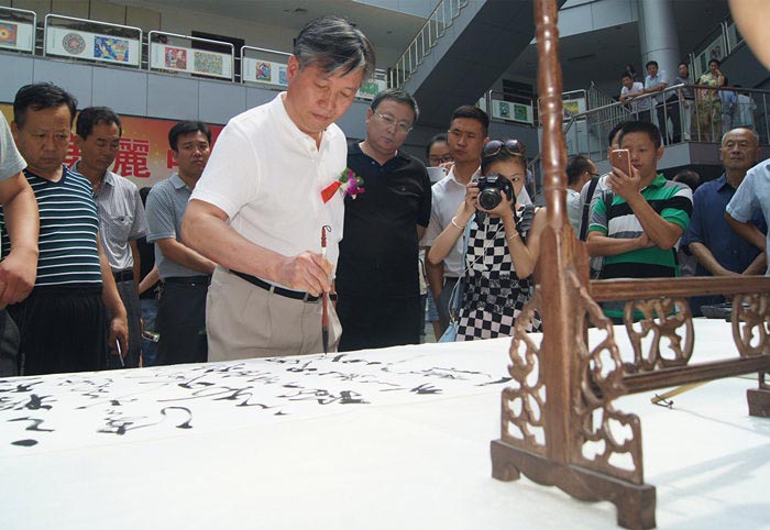 开幕仪式后,国务院参事、农业部原副部长刘坚先生,中央国家机关美术家协会主席王阔海,中央国家机关美术家协会副主席王继坤现场即兴著作,并展示赠送给博物馆的书画作品,向日照人民表达书画艺术家的美好祝愿和期待。现场泼墨挥毫,大家风范即现,引得众人围观,赞叹声此起彼伏,留影录像记录下这文情风雅一瞬。