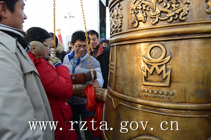 图/市民和游客撞响“太阳圣钟”,共同感恩、祈福