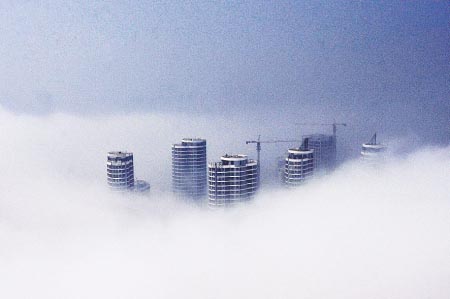 5月19日,新市区海边高层建筑被平流雾笼罩。当日,我市新市区出现平流雾景观,高层建筑在大雾中若隐若现,宛若仙境。