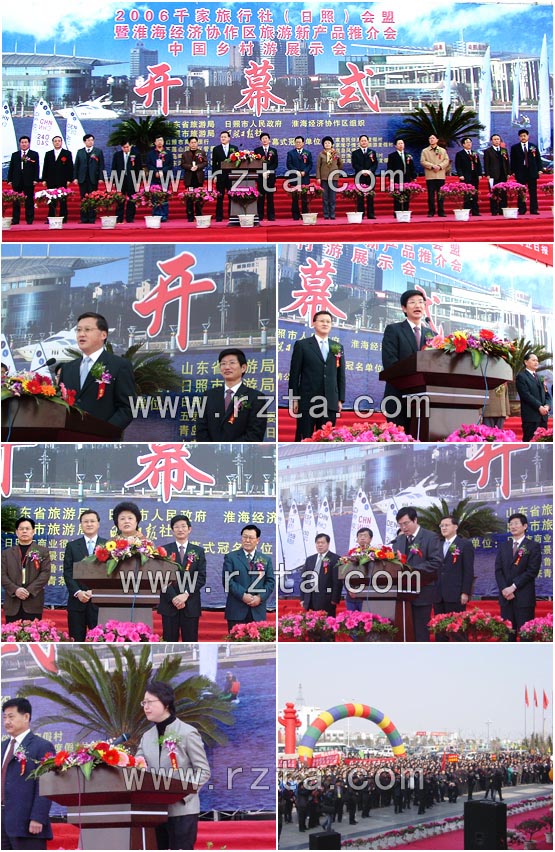 阳春三月,春风送暖。3月31日,由日照市人民政府、山东省旅游局、淮海经济区联合主办,日照市旅游局、日照日报承办的“2006千家旅行社(日照)会盟暨淮海经济区旅游新产品推介会•中国乡村游展示会”开幕式在日照会展中心隆重举行。