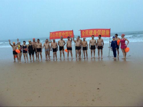 据了解,2015年8月8日是第七个全国“全民健身日”,为积极响应国家体育总局、省体育局的号召,广泛深入开展全民健身活动,引导广大群众增强体育健身意识,激发健身参与热情,在全社会形成崇尚健身、参与健身、支持和推动全民健身事业发展的良好氛围,日照市冬泳协会在游泳锻炼的同时,还利用业余时间编排了“冬泳健身舞”。他们穿泳装、带泳帽,腰栓彩色浮球。用十分逼真的动作和优美的舞姿来表现冬泳健身的情怀和风采。“冬泳健身我的梦”已经成为日照市冬泳协会全体会员的理想,与构筑全民中国梦紧密相连。日照市体育局局长黄秀芹曾专门通过电子邮件给冬泳协会发了贺信予以鼓励。