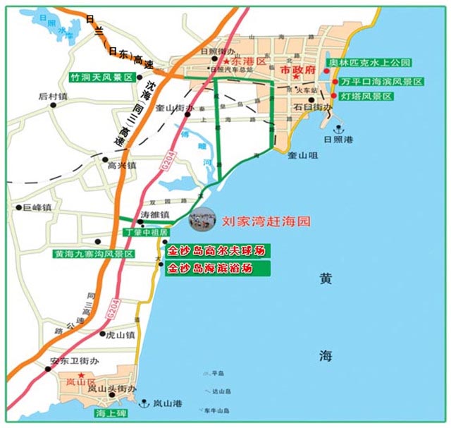 1. 日兰高速日照出口→迎宾路→临沂路→滨海路→刘家湾赶海园景区