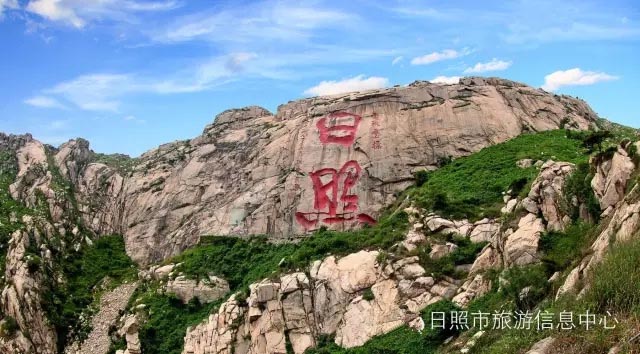 代表日照现代形象的巨书“日照”两字刻于山顶顶峰悬壁之上。 “日”字长20米,宽17.5米,“照”字长25米,宽25.5米。它是汉字摩崖石刻的世界之最,载入世界吉尼斯大全。