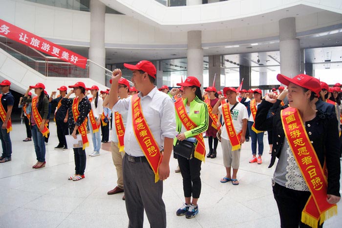 9月30日,日照市旅游局在日照会展中心举行日照市旅游志愿者总队成立仪式,并启动日照旅游志愿者服务工作。日照市旅游局、各区县旅游局分管领导出席仪式,景区、星级饭店和旅行社等100余名志愿者参加了活动。同一天国家旅游局在北京启动“中国旅游志愿者成立暨旅游志愿服务活动”。