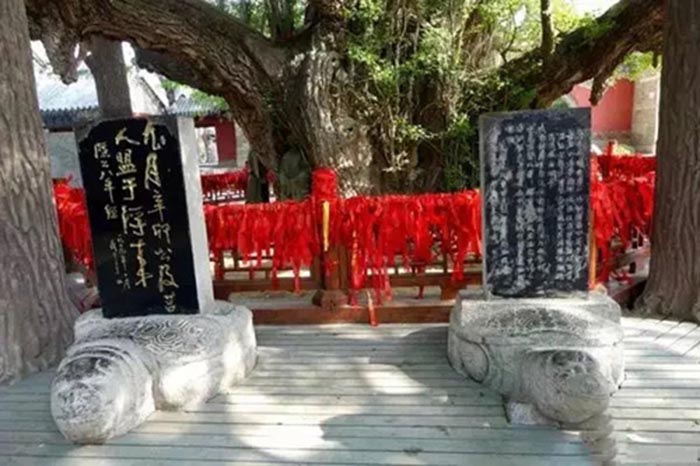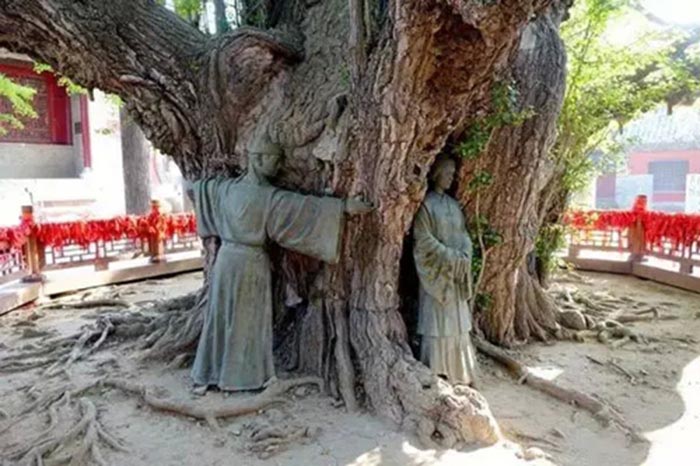 第二怪: 国之会盟当华盖 华盖是指古代君王出门,张在头顶上或车上华丽的伞盖。银杏树繁荫数亩,宛如一把巨伞,鲁国国君鲁公和莒国国君莒子把银杏树王当作华盖进行了会盟。