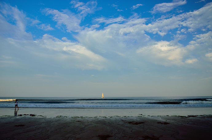 我总感觉大海有种神奇的力量,你看着它的时候所有的烦恼都没有了,这也难怪好多电影里面主人公烦恼的时候都到海边,大概海边真的能带走烦恼,抛掉不开心,看着海水的浪一个又一个的涌到岸边,仿佛在轻轻的向你诉说海的另一边的故事。淡淡的有着海腥味的海风也轻轻的拂过你的面庞,她是否也在向你倾诉着她的故事,柔柔的像母亲的手,拂过你的头发,拂过你身体的每一处。
