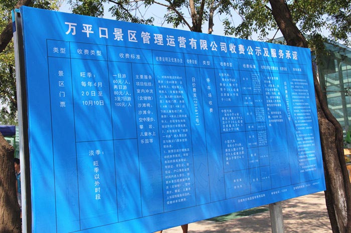 对此,市物价局价格监督检查局综合科科长曾茜表示,通过前期景区门票价格制定,市物价局组织召开万平口景区价格听证会,同时规范收费公示栏和明码标价签格式。景区营业后,与景区管理人员一起指导景区经营商户规范填写明码标价签。旅游旺季期间,加强不定时的市场价格巡查和明察暗访,检查景区门票和停车场收费情况,旅游商店商品标价是否规范,要求一货一标,小货商品归类标价,计价单位等内容是否标示完整,遇到标价不规范的,及时进行指导改正。如遇不明码标价现象,没有违法所得的,处5000元以下的罚款;有违法所得的,处一到五倍的罚款;涉嫌价格欺诈的,罚款5万到50万元。目前万平口景区内没有出现因价格问题引起的投诉。