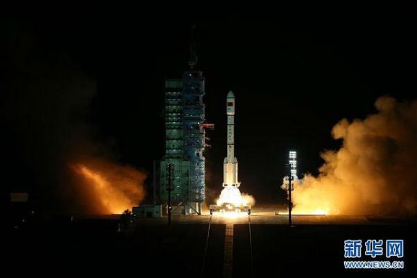 9月15日,中国在酒泉卫星发射中心用长征二号F运载火箭将天宫二号空间实验室发射升空。 新华社记者 琚振华 摄