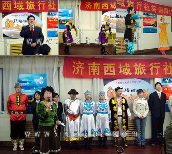 11月30日,济南西域旅行社、新疆新鲁旅行社、丝路雪域旅行社在日照市联合举办感谢同仁酒会活动。日照市旅游局市场开发科科长张锡华、山海天旅游度假区旅游局局长任立宝、山东西域旅行社、新疆新鲁旅行社总经理王梅及日照各大旅行社的负责人出席了答谢酒会。