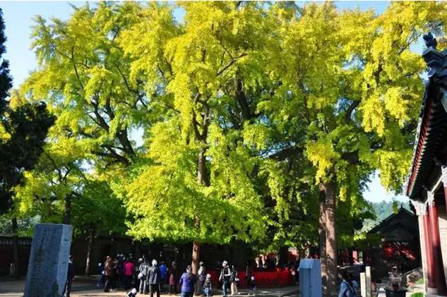 又是一年银杏黄,最是金秋浮来山。秋意渐浓,漫步在银杏树下,听着风吹树叶簌簌作响,你最想去哪里看银杏呢?秋冬时节,寒风乍起,落叶纷飞,天地一片金黄,相映成趣,构成了一道道绝美景观。在定林寺院内,有这么一颗千年古树,此树高26.7米,主杆挺拔,枝繁叶茂,甚是壮观。据说这颗银杏树距今已有4000多年了,这颗“天下银杏第一树”是莒鲁会盟的“见证者”。