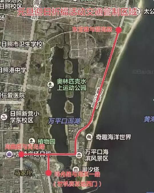 二、元旦当日5:00至8:00,对青岛路与海曲路交叉口以东、东营路与碧海路交叉口以南、绿舟南路与海滨一路交叉口(世帆赛基地西门)以北路段实施交通管制,车辆凭入场券进入。