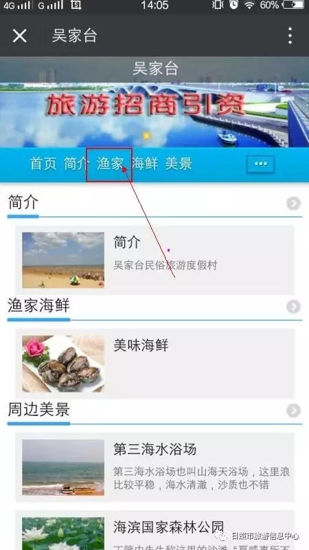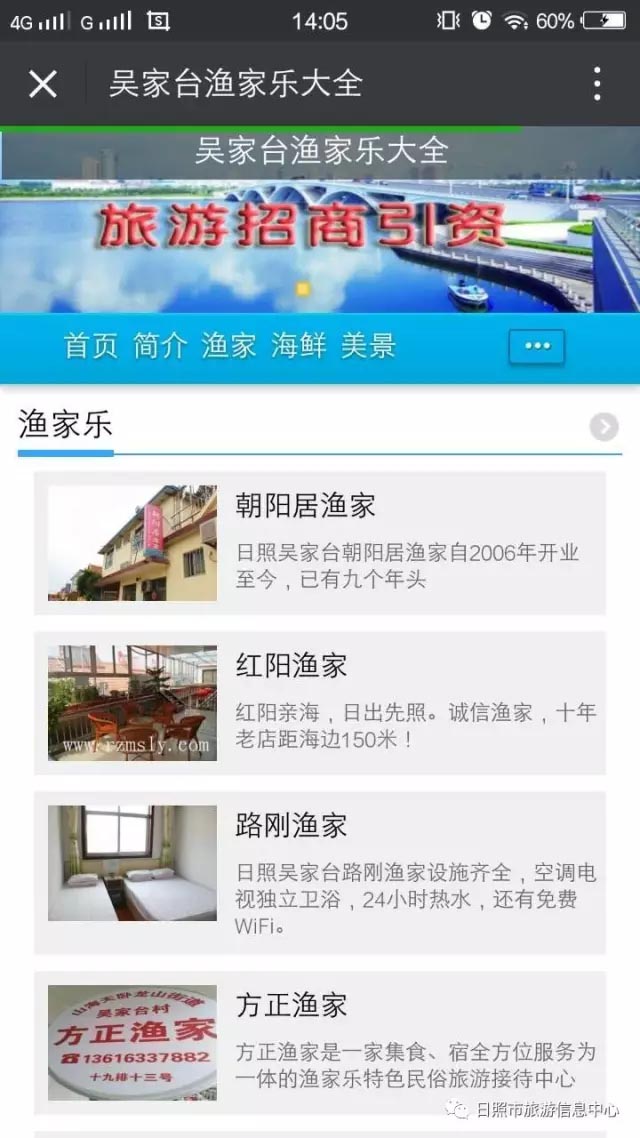 3.点击上面的菜单导航栏“渔家”,就可以预订啦~