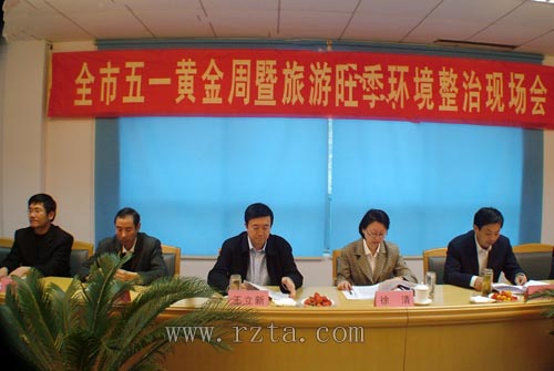 市旅游局局长王立新在汇报中说,为了营造良好的旅游氛围,确保我市“五一”黄金周“安全、健康、秩序、质量、效益”五统一目标的顺利实现,全局做了大量的准备工作。首先,全面加强景区建设,积极推进民俗旅游的改造提升。其次,突出抓好旅游安全,确保黄金周安全有序。第三,加大促销宣传力度,扩大旅游市场占有率。第四,加大行业管理力度,树旅游行业新貌 。第五,强化培训,全面提升从业人员素质。最后,建立值班制度,确保信息畅通 。为了确保黄金周期间信息畅通,各级旅游行政管理部门、各涉旅单位都建立了值班制度,从4月30日开始至5月7日坚持24小时值班,保持通讯畅通,及时报送假日旅游信息,同时做好突发事件处理工作,遇有突发事件要求在第一时间报告市旅游假日办公室,并按常规渠道报告有关部门,并立即启动应急预案进行处理。