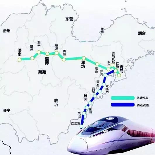 ★ 同时在青日连铁路与济青高铁之间新建了一条直通联络线(不需进红岛站换乘),通过联络线可分别在2、4小时内无换乘快速到达济南、北京。