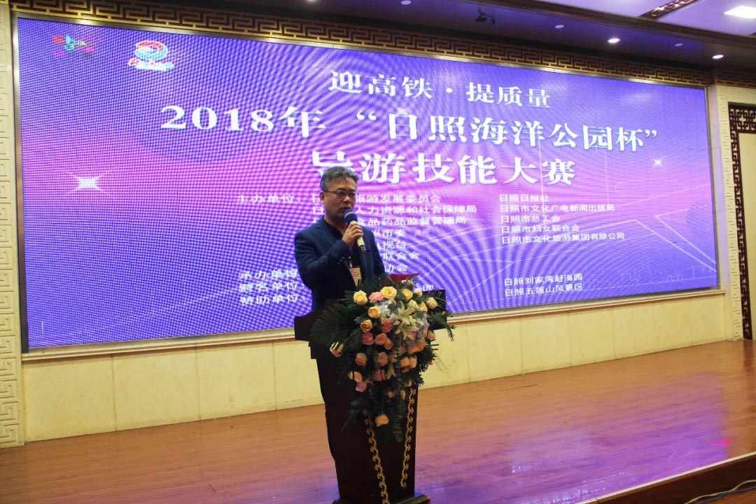 日照市“迎高铁 提质量”旅游行业服务技能大赛,是日照建市以来规格最高、规模最大、参与部门最多、奖项最多全行业参与的盛会。作为大赛的三项赛事之一,导游(讲解)员大赛以赛所学、全面提升我市导游服务技能,促进全市旅游服务品质提高具有十分重要意义。希望各位选手可以赛出水平,赛出风采。同时,希望能够扩大导游协会的会员,将日照市优秀的导游资源集合,更好地为日照旅游发展做出贡献。