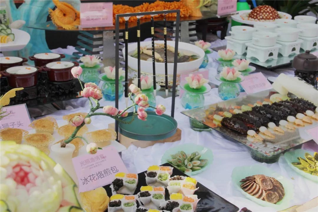日照首届文化旅游美食节暨旅游饭店业烹饪与服务技能大赛是“迎高铁 提质量”旅游行业服务技能大赛的一项重要赛事,由日照市旅游饭店餐饮烹饪协会承办,自10月26日至28日,为期三天,包括烹饪技能大赛、服务技能大赛、特色名优小吃展卖会、地域性食材展卖会、旅游商品展卖会、特色文化宴席展评、国家级烹饪大师绝技表演、特色文艺演出等精彩内容。全市共有55个乡镇街道,108支参赛代表队,100名市民评委参与评选,这是日照建市以来规格最高、规模最大、参与部门最多、全行业参加、全名参与的盛会。开幕式现场烹饪大师表演拉面绝活、蒙眼雕花、冰上添花等烹饪绝技,吕剧唱段、民间杂耍,功夫扇等非物质文化遗产表演为我们带来视觉和味觉的双重享受。
