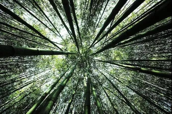 茂密的竹林铺成翠绿色的长廊。走着走着,脚步也变得轻缓随心。