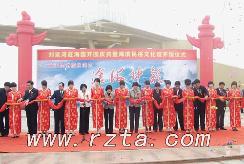 4月30日上午10:00,日照市东港区人民政府在刘家湾赶海园演艺广场隆重举行了刘家湾开园庆典暨海滨民俗文化展馆开馆仪式。