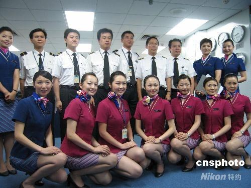 七月四日早上六点三十分,南航首班两岸周末包机CZ三O九七将启航,首航机组整装待发。 中新社发 郭军 摄