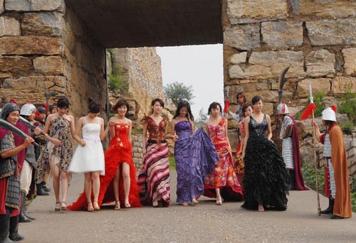 穿着时尚的美丽少女,在充满古朴气息的古城墙前展现处迷人风姿的时候,天上王城也就有了另外一番风情。