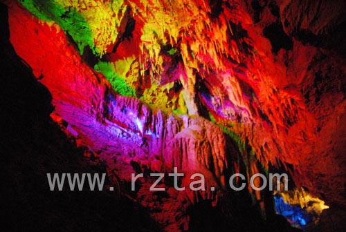 随着洞穴的深入光线也就愈加暗淡,直到冷冷的山壁将外界的最后一丝光线隔离,我们才算彻底的置身在了这个美轮美奂的世界中。所到之处都是那些被五颜六色的光晕所笼罩的钟乳石。