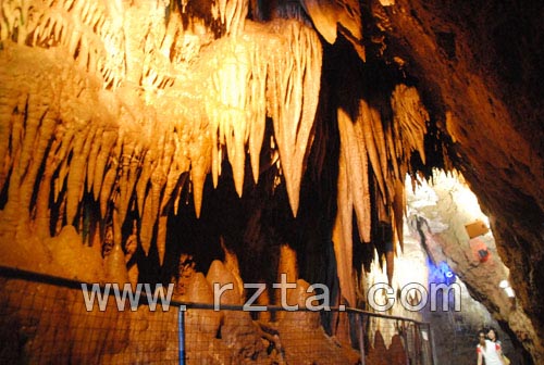 画廊总长6600米,一期开发了1600米。数道石门将画廊天然分成了“北国风光”“宇宙奇观”“南国风情”以及“海底世界”四幅画卷。其实溶洞真正吸引人的地方还在于它的物象和空间环境引起的美感,就像上幅图片所看到的那幅“北国风光”画卷之“冰落白山”,洁白无瑕的钟乳石层层叠叠构成了一幅长达十米之宽的“北国风光,千里冰封,万里雪飘”的壮丽画卷,让前来观赏的游客心旷神怡。下面这幅图片,名叫“相依鸟”,看上去好像是一对小鸟背对着我们一样。它也是钟乳石中很珍贵的,属于米黄玉的一种。