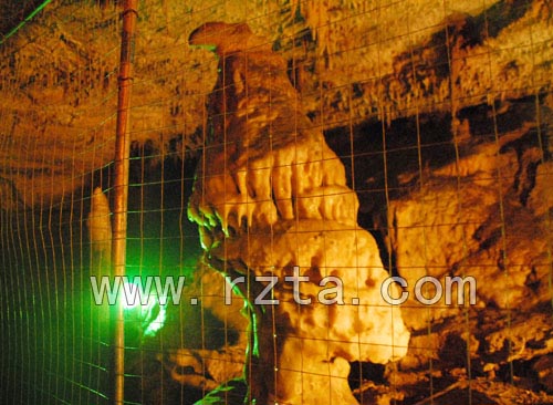 溶洞群前后相通,洞内大洞套小洞,小洞通大洞,其复杂的地形为探险者提供了一个绝佳的一试身手的机会。在这长长的溶洞内有一个镇洞之宝,名叫“金尊独雕”。它长的形似大雕,专家测定它的生长期至少在一亿年之上,身价不菲,不愧为镇洞之宝。