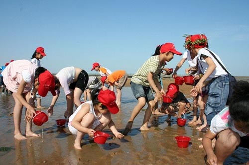 赶海拾贝、踏沙寻蟹,肯定是此行不可或缺的一部分。小记者每人拎着一个红色小桶,兴奋地在浅滩上奔跑着,继而是认真的寻找。漂亮的贝壳、调皮的海蟹便是这些孩子心中最美的收获。