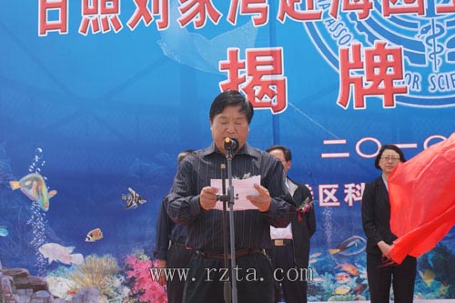 仪式上,副区长安丰华在讲话中说,近年来,刘家湾赶海园在大力发展滨海旅游的同时,紧紧围绕“节约能源资源、保护生态环境、保障安全健康”这一主题,投资建设了海洋生物馆,采取图文、视频等多种直观、生动的形式展示海洋科普知识,探索出一条科普与旅游相结合的新路子,成为日照市首家“全国科普教育基地”。