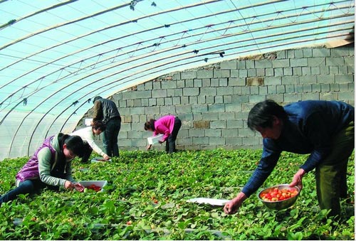 据了解,目前河山镇仅范家官庄村就种植草莓200多亩,其中暖棚10个主要用于游客采摘,小工棚100多个用于市场供求,目前还发展了东山竹园两村的特色采摘业来带动当地经济。