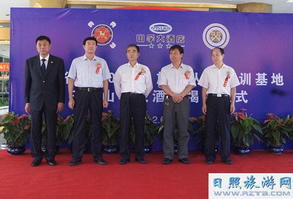 9月1日,山东省(2012)旅游人才培训基地日照山孚大酒店揭牌仪式隆重举行。出席现场揭牌仪式领导有,省旅游局人事处处长张明池(右二)、市旅游局局长王立新(左二)、市旅游局副调研员杨家坤(右一)、山东山孚集团董事长滕海波(左三)、日照山孚大酒店总经理何建国(左一)等。
