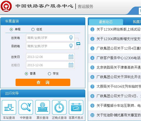 记者登录www.12306.cn网站后看到,目前显示的仍为旧版,但在页面左上角处可点击“新版售票”,进入后可看到页面左侧为“车票查询”,右侧为“最新动态”和“常见问题”等。选择车票预订后,新的界面让人感觉更加人性化,无论是选择高铁动车或者普速列车,还是选择同一城市的不同出发站,都更加快捷,在订票页面上方可直接勾选,不需要的车次将被隐去,而相关折扣还在页面上被橙色的小三角高亮出来。