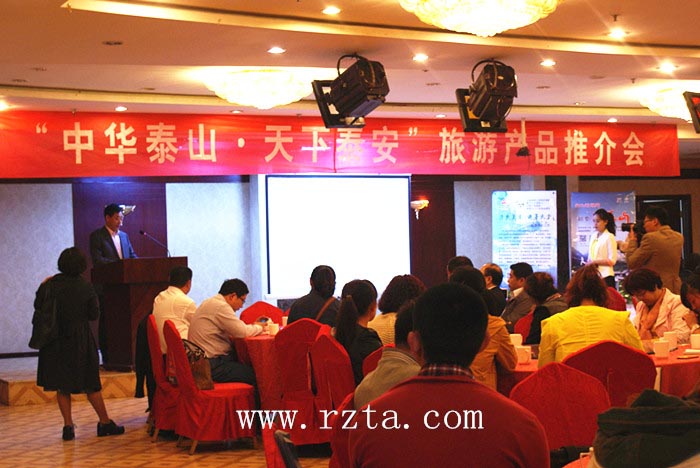 泰安市主要景区的负责人一一介绍了各自的旅游产品,结合视频资料,泰山景区、泰山封禅大典、岱庙、方特欢乐世界、花样年华风景区、泰山温泉城、天乐城国际旅游度假区、新泰莲花山景区、徂徕山景区等泰安旅游风景区展现了各自的绰约风姿,将泰安市旅游资源浓厚的历史人文气息和鲜明的时代特色充分融合在一起。